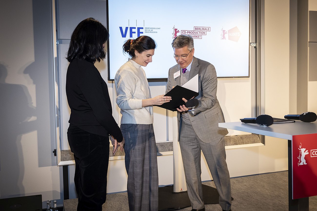 Im Rahmen der Internationalen Filmfestspiele Berlin erhalten bis zu zehn Produzent*innen aus dem Programm „Berlinale Talents“ die Gelegenheit, ihre Projekte potenziellen Partner*innen, Sendern und Finanziers vorzustellen. Seit 2004 stiftet die VFF den mit 10.000 Euro dotierten VFF Talent Highlight Award, der im Talent Project Market vergeben wird.